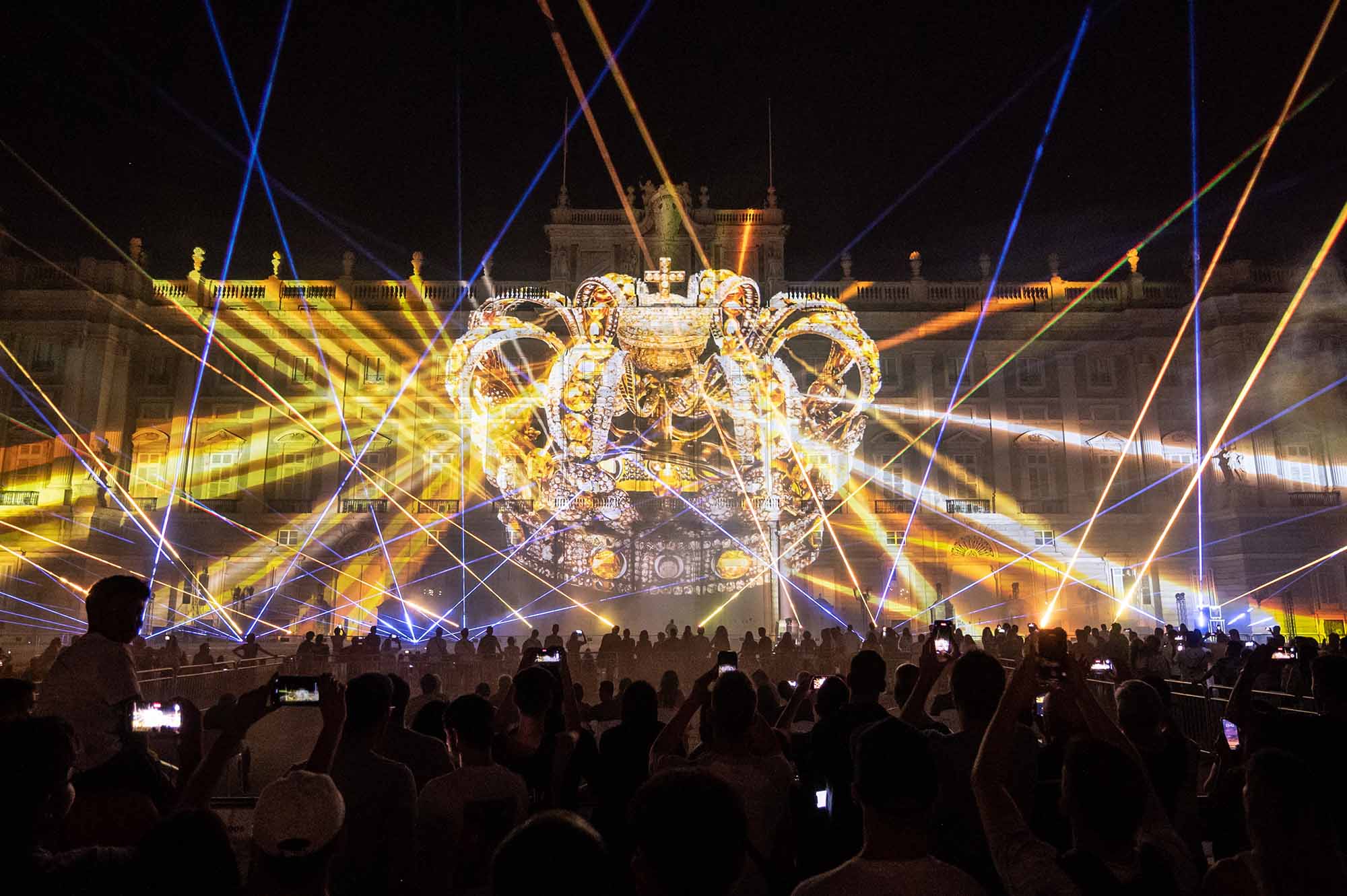 To bring the collection even closer to the public, and as a climax to the inaugural event of this new museum center, National Heritage entrusted us with an audiovisual show. The chosen setting was the facade of the Armory Yard of the Royal Palace of Madrid, the largest in Western Europe, and very close to the new building of the Gallery, which is work of the architects Tuñon + Mansilla.