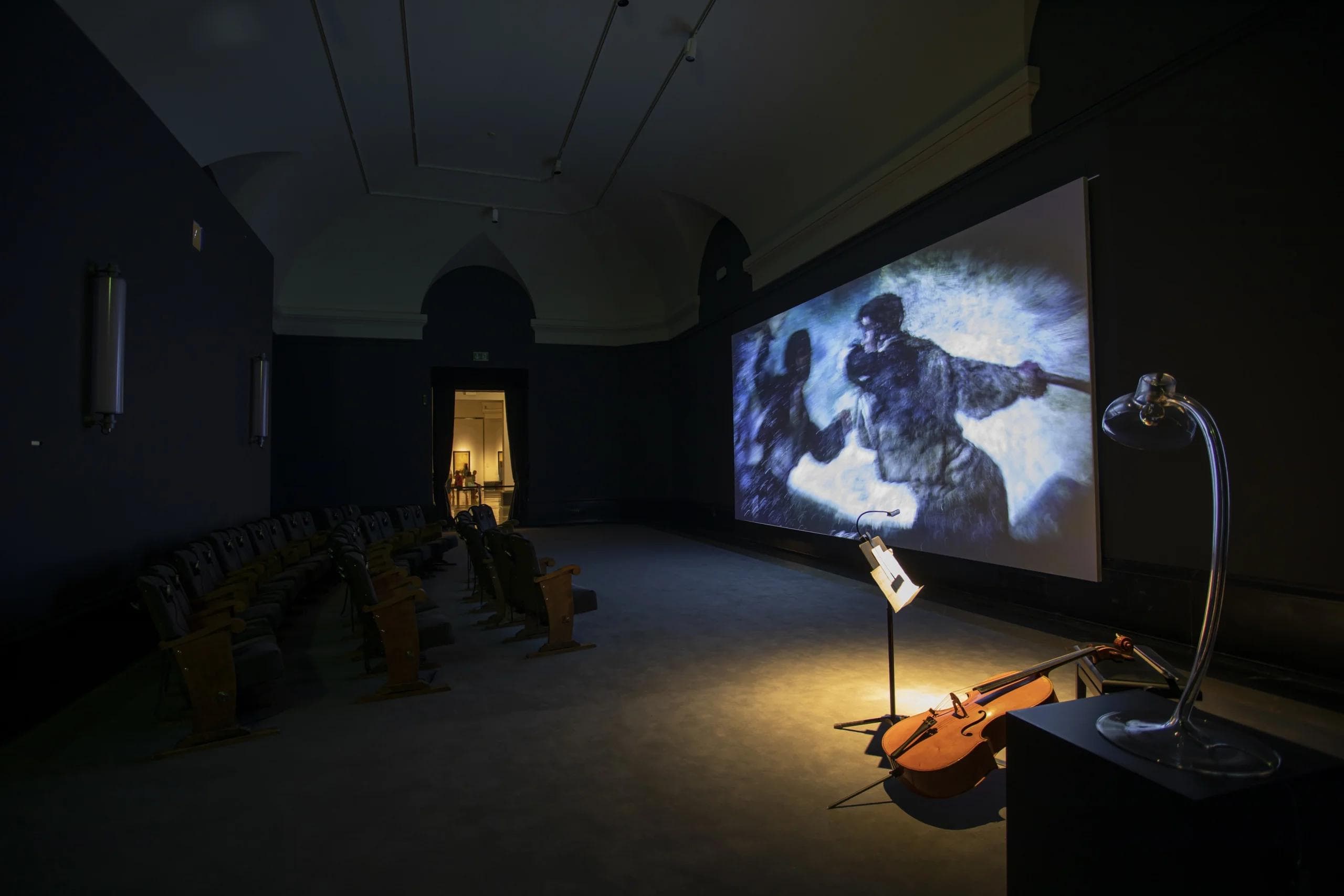 Parreno’s technique helps to accentuate the painting’s dizzying terrors and unsettling wickedness. The cinematic yet haunting rendition creates an ambient portal in time plagued by depravity and war.