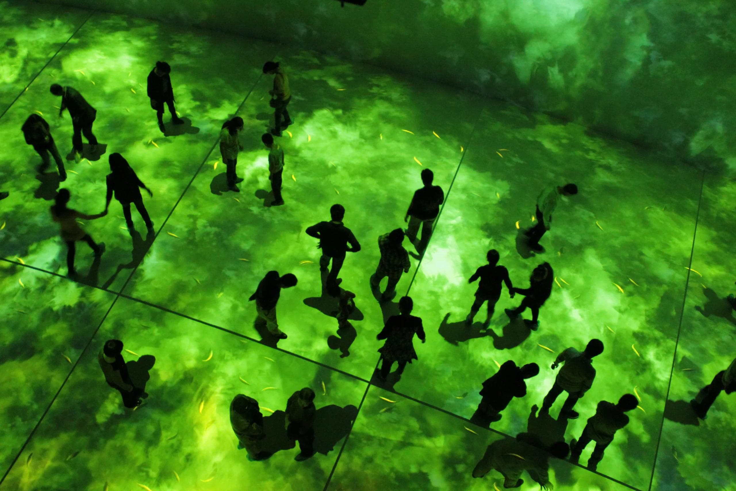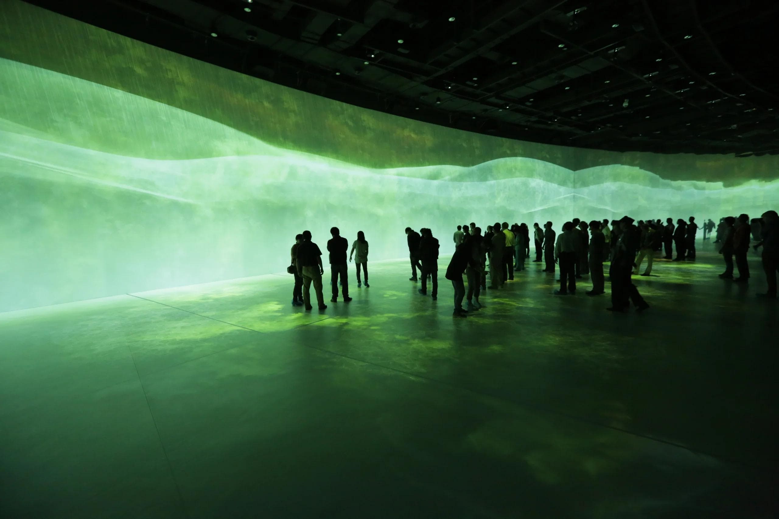 We crafted a monumental AV experience at a total 650 m2 with 22 high resolution projectors. The interactive floor occupies a space of 400 m2 while the interactive screen measures at 250 m2. Within this theater, visitors immerse themselves in an epic 15 minute tale on the rise of the Kingdom of Wu. It acts as a time capsule, transporting the visitor to experience the trials and tribulations of a kingdom through cinematic martial arts and painted scenes. We did not want the visitor to idly observe the story but to take part in it. With the installed motion tracking cameras, visitors can move around and shape the various projected landscapes.