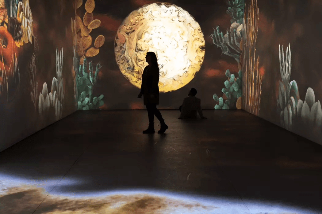 Life and Work of Frida Kahlo is an immersive scenic work of art that combines 360º projections, frame by frame animations and an original soundtrack to create a unique narrative experience around the worldwide icon. Imagined and executed by an international team of experts, it manages to push the boundaries of arts, films and performance. The most awarded immersive cultural work of art around the world, acclaimed by the public and critics in four countries. Inspired in Frida’s intimate diary, this cultural work of art presents a never-before-seen glimpse into Frida Kahlo’s private world.