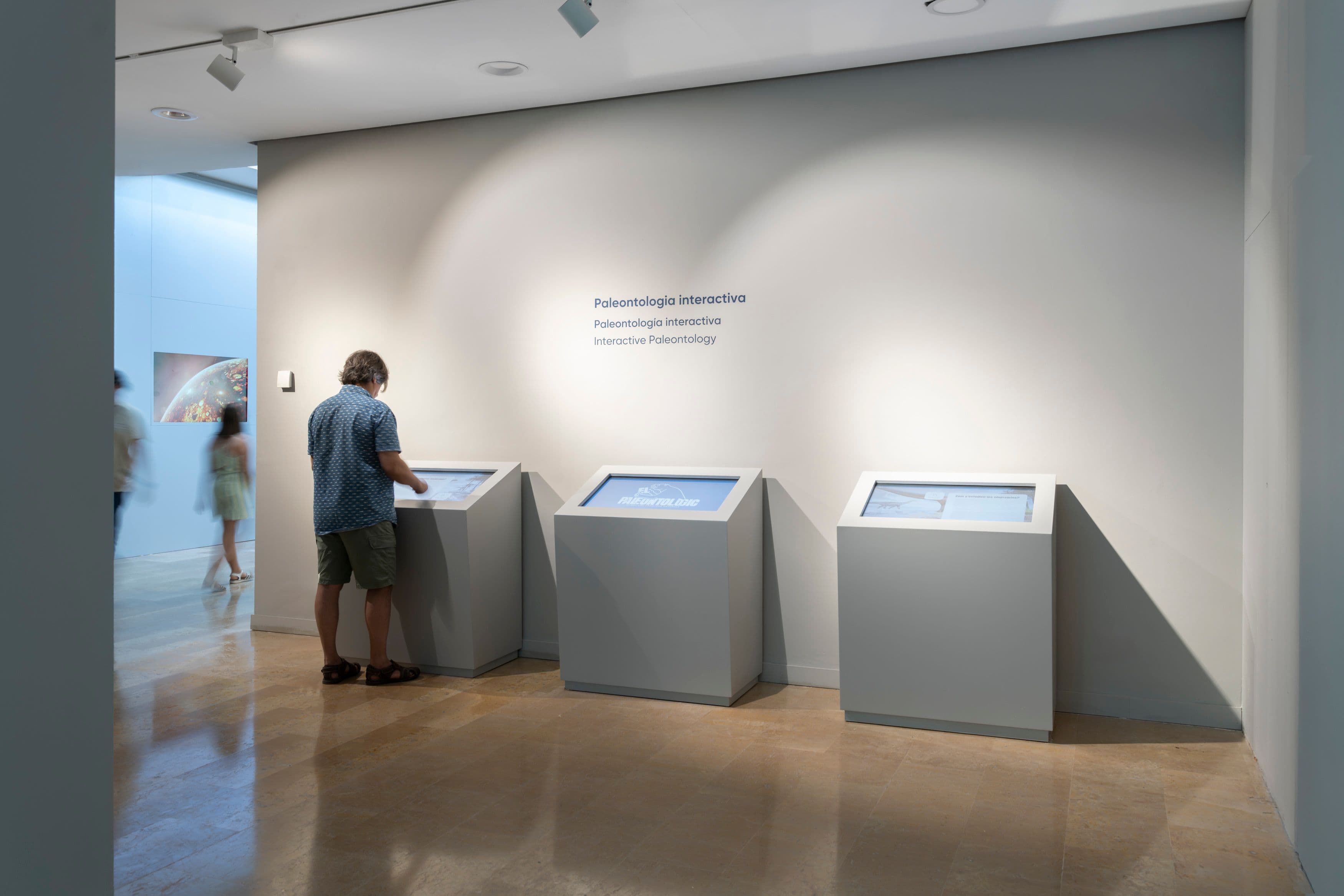 La nueva exposición incorpora realidad aumentada, salas audiovisuales inmersivas, dispositivos interactivos, películas 3D y recursos visuales de gran formato, como un impactante ciclorama de 20 metros que recrea la Sudamérica prehistórica.